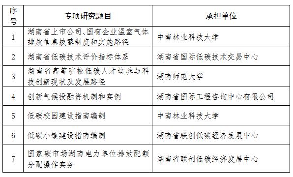 为深入开展应对气候变化领域重大问题和政策研究,我委于9月25日发布了《2018年度应对气候变化领域专项研究承研单位征集公告》,经比选审核,确定中南林业科技大学等5家单位为专项研究承担单位。具体如下: