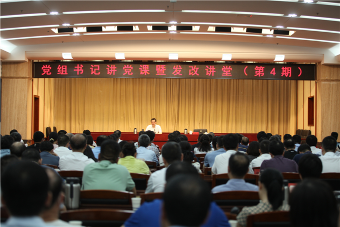 7月9日,省发改委党组书记讲党课暨第四期“发改讲堂”开讲。省委财经办主任,省发改委党组书记、主任周海兵以“学习贯彻习近平总书记对湖南重要讲话指示批示精神,推进新时代发改工作高质量发展”为主题,给全省发改系统干部职工上了一堂内涵丰富、深入浅出、生动形象的主题党课。