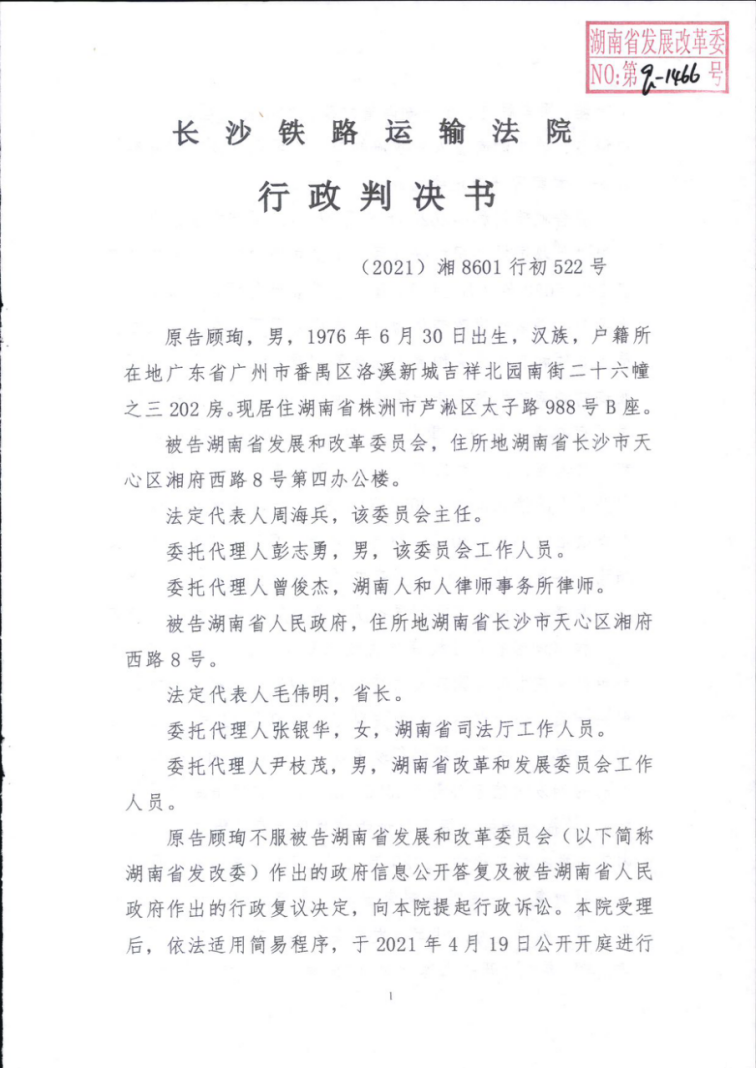 顾珣诉beat365官方网站手机版_365三式投注_365打水账号怎么防止封号发展和改革委员会政府信息公开案一审判决书(2021)湘8601行初522号