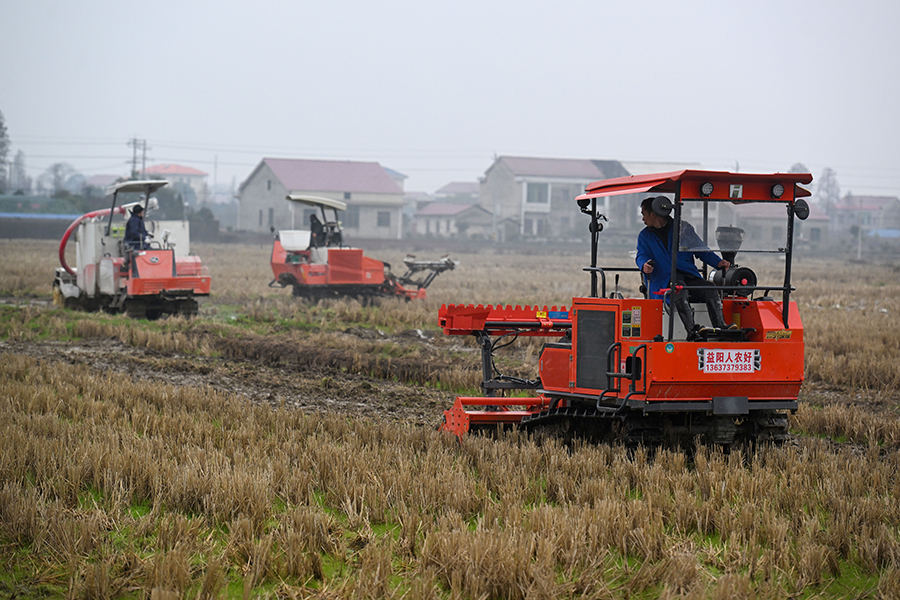 2月10日,益阳市赫山区八字哨镇高梁坪村,种粮大户夏志鹏流转的1020亩稻田里,农机在田间进行土壤翻耕。今年,赫山区计划完成早稻专业化集中育秧36万亩以上。 湖南日报全媒体记者 郭立亮 通讯员 郭轩 摄影报道