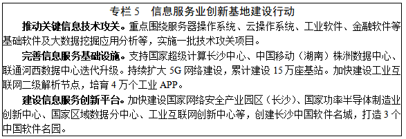2.信息服务。加快推动5G、大数据、人工智能、云计算、物联网、区块链等新技术应用,推进“数字湖南”建设,打造全国信息服务业创新基地。力争到2025年,全省信息服务业增加值超过1200亿元。大力发展软件服务业。推进操作系统、数据库、中间件研发,发展高端通用软件、应用软件。推动政务、金融、医疗、教育、文化等行业软件即服务(SaaS)发展。完善工业互联网体系。加大高端工业软件开发应用力度,加快建设工业互联网二级解析节点,开发一批工业APP,建设国家级工业互联网平台、工业互联网创新中心。整合壮大大数据产业。统筹布局大数据中心,支持建设边缘计算中心,增强国家超级计算长沙中心服务应用能力,建设面向不同行业的大数据分析应用平台,培育数据服务、数据分析、数据交易治理等新业态,重点培育一批数据中心上下游产业集群、智能终端产业集群、数据融合产业集群。打造人工智能产业链。推进长沙国家新一代人工智能创新发展试验区建设,加快发展智能制造、智能驾驶、智慧教育和智慧医疗等。培育信息安全产业。发展安全测评与认证、咨询、预警响应等专业化服务。强化数字经济信息安全,加快建设网络信息安全监测平台。围绕推动国产PK体系与鲲鹏体系协同发展,构建“两芯片一生态”的湖南特色信创产业体系。构建区块链产业生态。促进共识机制、数据结构、加密算法等区块链底层技术研究,建设一批国家级区块链产业园和基地,以及“区块链+”试点示范项目。推进智慧城市和数字乡村建设。加快推行城市运行“一网统管”、政务服务“一网通办”,打造数字化政府,建设一批新型智慧城市。完善农村信息服务,构建覆盖城乡的信息服务体系。