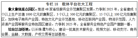 培育地市服务业中心城市。以市州中心城市为依托,着力提升信息服务、商务商贸、创意创新等集聚功能,吸引各类人才创新创业,提高城市服务业综合承载和资源优化配置能力,带动区域性城镇群发展。